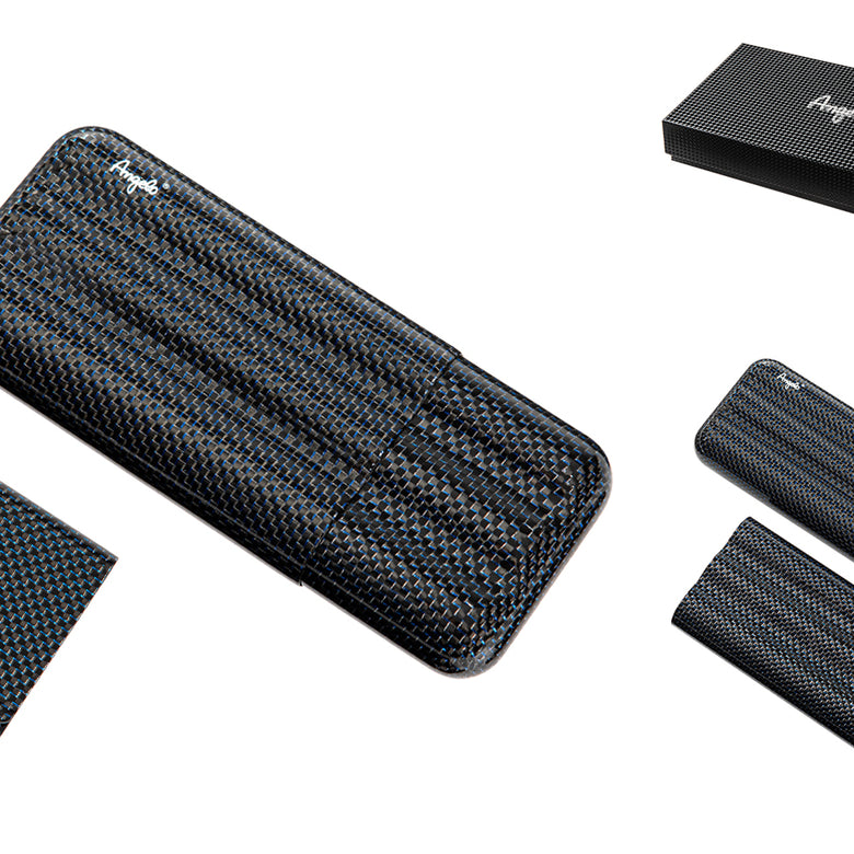 • Angelo Zigarrenetui 3er Echt Carbon blau
